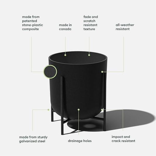 Veradek Mason Series Raised Lima Planter - Round Planter for Patio/Balcony | Plastic-Stone Composite w/Metal Plant Stand | Modern Décor for Plants