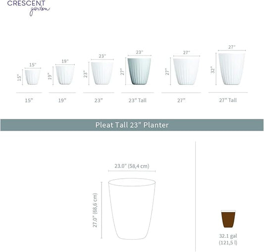 Crescent Garden Pleat Modern Decorative Planter, Indoor/Outdoor Pot, Resin Plant Pot with Drain Hole - 23" W x 23" H (Bark)