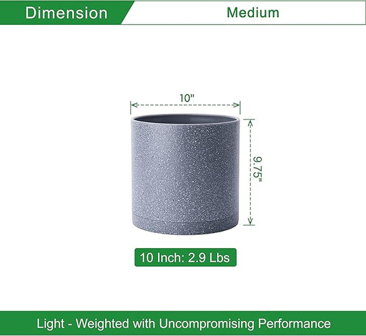 D'vine Dev 10 Inch Plastic Planter Pots for Plant Pot with Drainage Hole and Seamless Saucers, Speckled Gray Color, 74-X-G-2