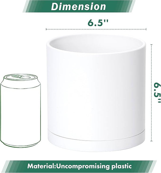 D'vine Dev 4 Pack 6.5 Inch Modern Plastic Plant Pots, Small Garden Planters for Plant with Drainage Holes and Saucers, White Color, 74-Z-L-2