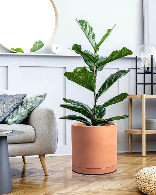 D'vine Dev X-Large 12 Inch Terracotta Plant Pot with Drainage Hole and Saucer, Round Cylinder Planter Pot for Indoor Plants, 40-X-A-6