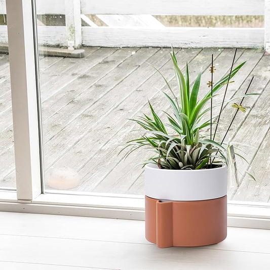 8 Inch Self-Watering Planter Pot with Terracotta Insert, Deep Water Reservoir, and Ceramic-Alike BPA-Free Plastic Planter Pot for Plant, Modern Planter for Houseplants, Terracotta/White, 53-B-T-6