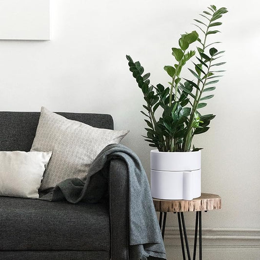 Phoenix Vine 8 Inch Self-Watering Planter Pot with Terracotta Insert, Deep Water Reservoir, and Ceramic-Alike BPA-Free Plastic Planter Pot for Plant, Modern Planter for Houseplants, White, 53-A-T-1