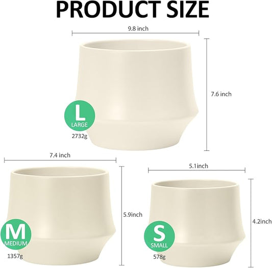 8/7/6 inch Plant Pots, Set of 3 Cylinder Flower Pots for Outdoor Indoor Plants, Decorative Plastic Planters with Drainage Holes and Saucers for Garden House Plants, White