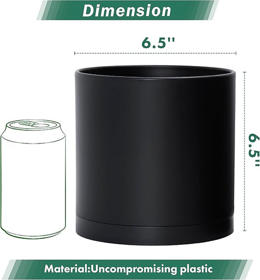 D'vine Dev 4 Pack 6.5 Inch Modern Plastic Plant Pots, Small Garden Planters for Plant with Drainage Holes and Saucers, Black Color, 74-Y-L-2