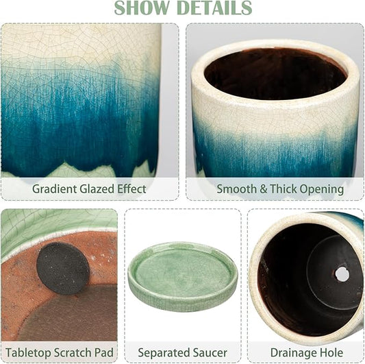 Oairse Ceramic Pot for Plants 5.5 inch Pots for Plants Small Planter Pot with Drainage Hole and Saucers Gradient Dark Teal Outdoor Inoor Flower Pots for Succulent, Cactus, Snake Plant, Herb
