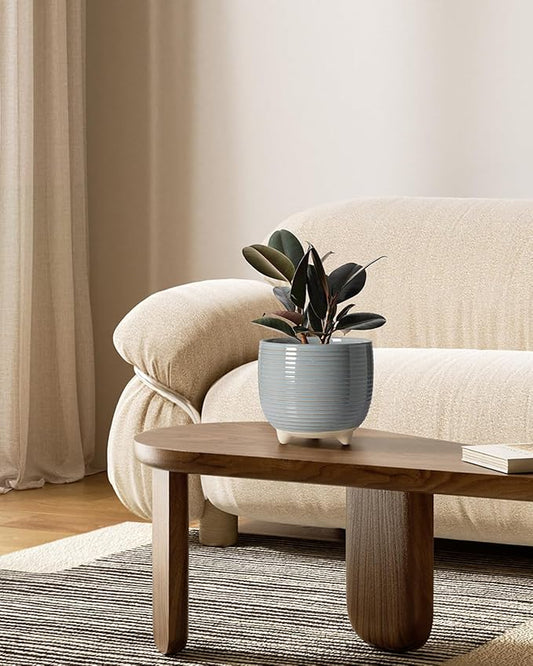 LE TAUCI Ceramic Plant Pots, 5.1 + 6.4 Inch Footed Pots for Plants, Modern Flower Pots for Home and Office, Indoor Planters with Drainage, Reactive Glaze Gray