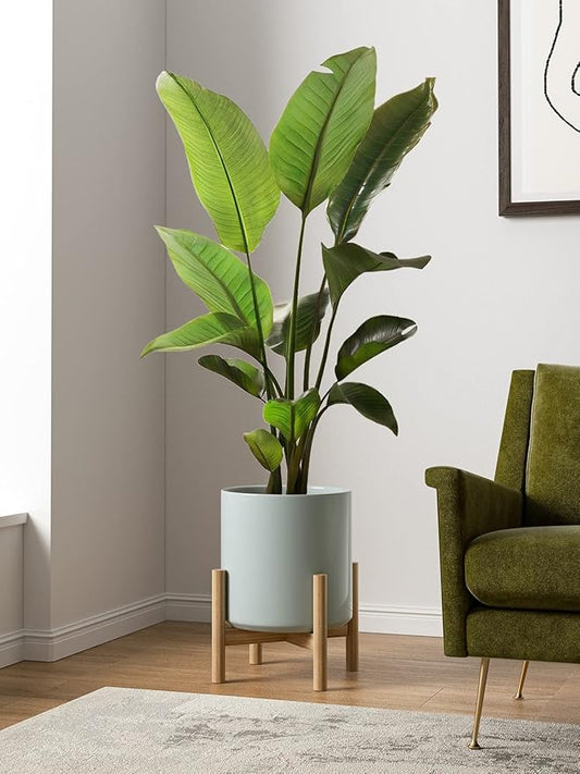 LE TAUCI 12 Inch Pots for Plants, Ceramic Large Plant Pot for Indoor Plants, Mid-Century Modern Planter Pot with Drainage Hole, Reactive Glaze Green