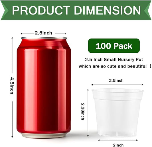 2.5" Clear Seeding Pots 100-Pack Round for Seeds Starter Pots, Seeds Germination Transparent Nursery Pot with Drainage Holes (2.5Inch,100Pcs,Clear)