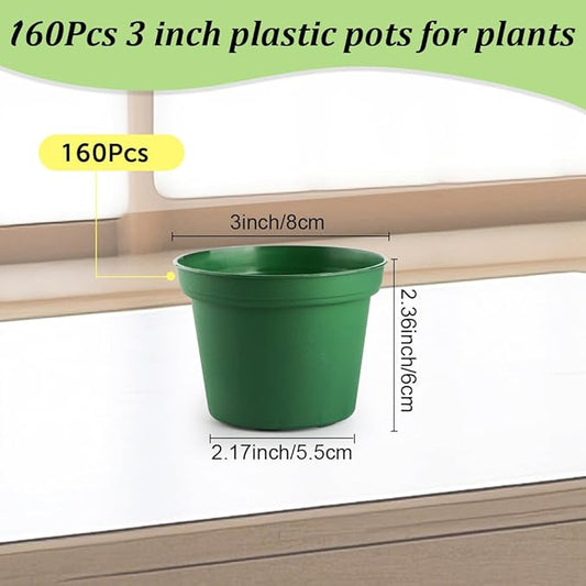 160 Pack 3 Inch Green Nursery Pots - Plastic Seedling, Seed Starter, Germination Pots with Drainage for Plants, Succulents, Flowers, Transplanting Gardening Gifts