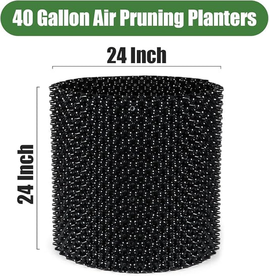 40 Gallon Air Pruning Planters, Sturdy Plastic Roots Control Planter Container for Tree Grow Outdoor, Garden Self-Planting Planters, Size 24"x24", Black, 2P
