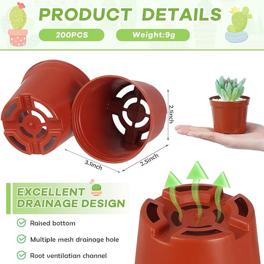 Yaomiao 200 Pcs 3 Inch Red Mini Plastic Plant Pot Nursery Seedling Pots Seed Starter with Drainage Holes for Indoor Outdoor Garden Succulent Plants Cuttings Transplanting