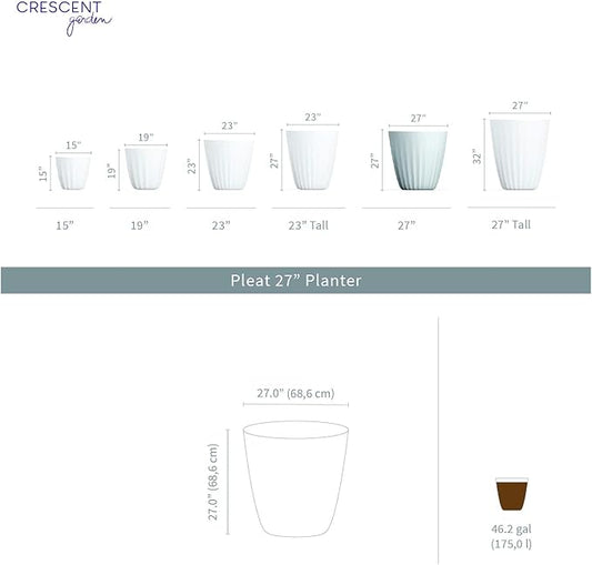 Crescent Garden Pleat Modern Decorative Planter, Indoor/Outdoor Pot, Resin Plant Pot with Drain Hole - 23" W x 27" H (Cloud White)
