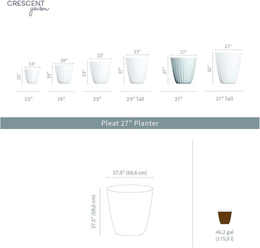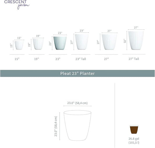 Crescent Garden Pleat Modern Decorative Planter, Grey Indoor/Outdoor Pot, Resin Plant Pot with Drain Hole - 27" W x 27" H (Ash)