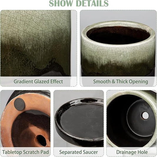 Oairse Ceramic Pot for Plants - 5.5 inch Small Planter with Drainage Hole and Saucers - Gradient Black Outdoor Indoor Flower Pot for Succulent, Cactus, Snake Plant, Herb
