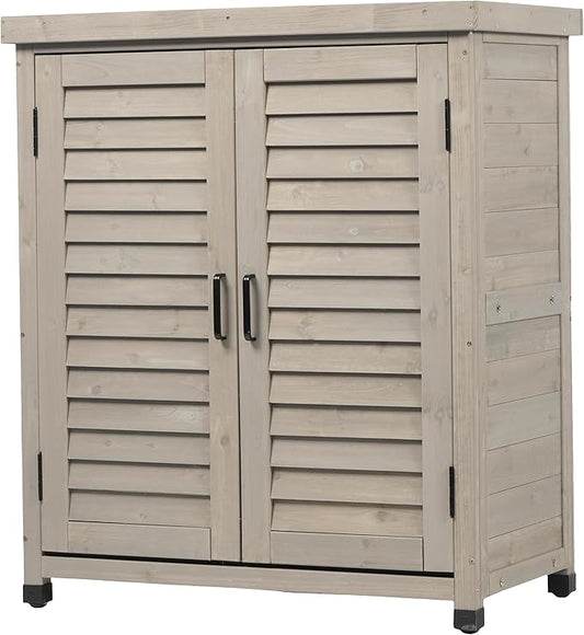 Potting Bench with Storage Cabinet and Metal Table Top for Outdoor Patio, Garden Furniture Wood Workstation Grey 31x17x36''