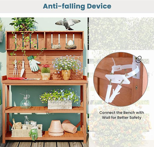 Kalolary Potting Bench for Outside Garden Potting Table with Storage Cabinet Foldable Shelf Multipurpose Garden Workstation Wooden Outdoor Potting Bench for Patio Garden Horticulture