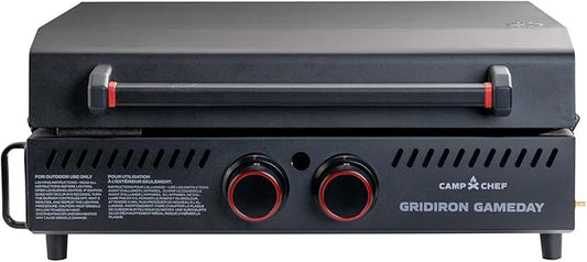 Gridiron Gameday 24" Portable Propane Grill – Flat Top Tabletop Griddle with Hinged Lid, 24,000 BTUs, Flamethrower Ignition, Dual Heat Zones, Adjustable Legs for Tailgating, Camping & Outdoor Cooking