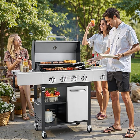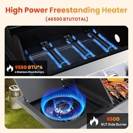 All Stainless Steel 4+1 Burner Gas BBQ Grill, Outdoor Propane Grill with Premium Enameled Coated Chamber Body & Porcelain-Enameled Cast lron Grates, 48,000 BTU