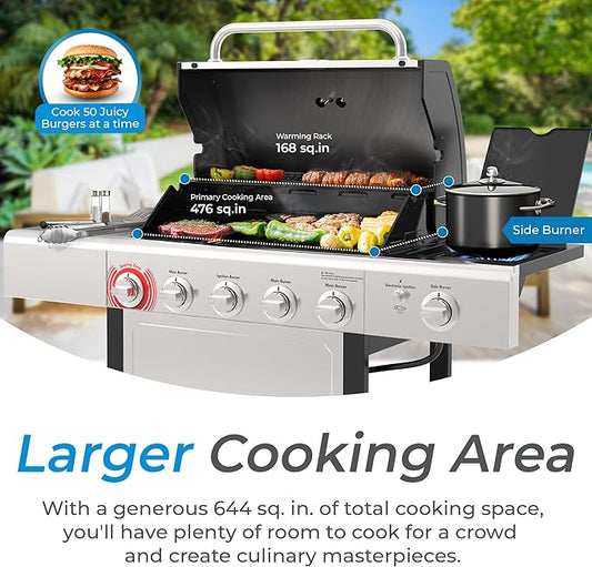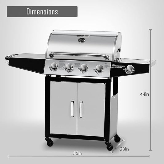 MASTER COOK 4 Burners Gas Grill, 52,000 BTU Cabinet Grill, Propane Grill, with Side Burner, Built with Stainless Steel, Silver&Black