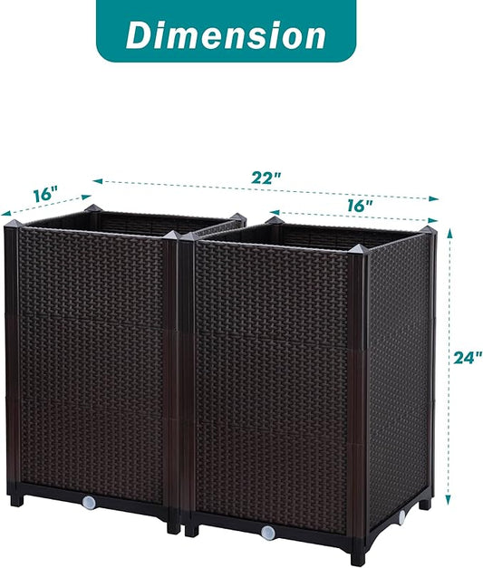 D'vine Dev Raised Patio Planter Box - Elevated Planter with Drainage Plug Raised Garden Beds for Growing Flowers, Herbs, Vegetables - Outdoor Standing Gardening Kit, Set of 2, RGB-D-2