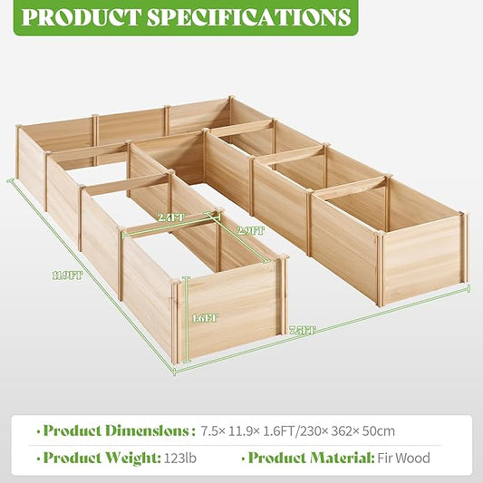 PaPaJet Wooden Raised Garden Bed for Outdoor, Nine Grid Deep Large Planter Box for Gardening, Vegetables, Flowers, Herbs(7.5× 11.9× 1.6FT)
