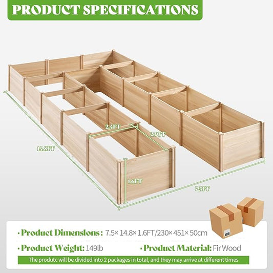 PaPaJet Raised Garden Bed for Outdoor, Eleven GridsDeep Large Planter Box for Gardening, Vegetables, Flowers, Herbs(7.5× 14.8× 1.6FT)