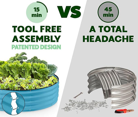 Round Galvanized Raised Garden Bed // 4×4×1 ft Galvanized Raised Garden Beds Outdoor for Gardening, Vegetables, Flowers // Patented Tool-Free Design Round Planter (Teal)