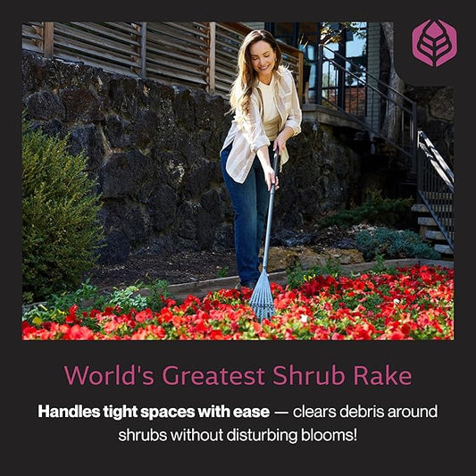 Yard Butler World’s Greatest Shrub Rake | Heavy Duty All Steel Rake with Ergonomic Garden Claw, 20 Free-Floating Tines & Long Metal Handle – Lawn, Yard, Bed, Landscape for Leaves, Grass & Debris, 8"