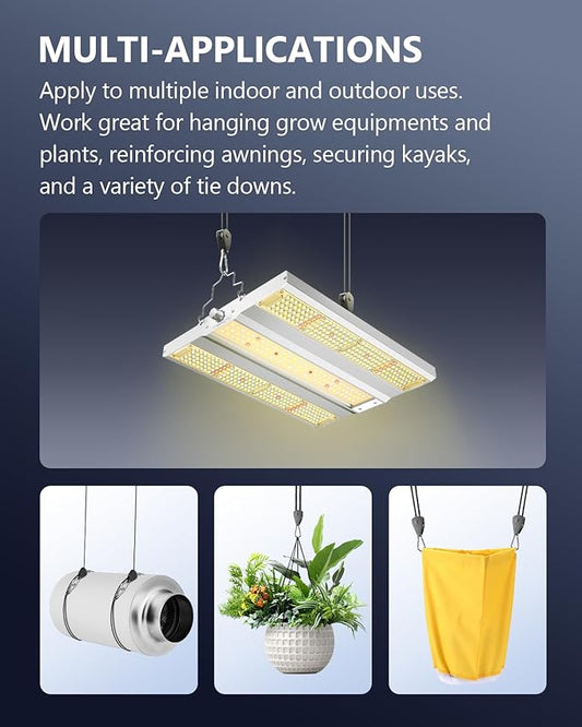 VIPARSPECTRA Retractable Heavy Duty Ratchet Tie Down Straps [8 Pack, 8ft, 75lbs/Pack], Rope Pulley System with Carabiner Hook Rope Adjuster for Hanging Plants/Grow Light/Tents Various Tie-Down Uses