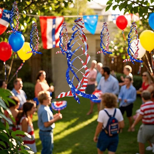 Hausse 6 Pack Patriotic Bird Repellent Spiral Reflectors Mylar Spinner, Hanging American Flags Reflective Bird Deterrent Device for 4th of July Independence Day, Scare Birds Animals Away