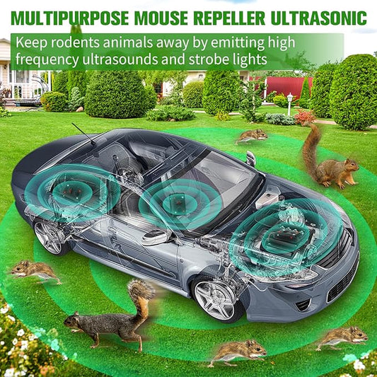 Ultrasonic Mouse Repellent for Car Engines, Animal Repeller Device Portable Mouse Blocker with Strobing Light, Under Hood Animal Repeller Rat Squirrel Deterrent for Outdoor Indoor Car Garage Attic