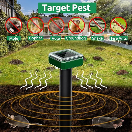 Mole Repellent Solar Powered,2025 Upgraded Vole Repellent Ultrasonic Solar Powered,Mole Repeller Outdoor for Lawns Garden Yard,Gopher Trap Killer for Gopher,Squirrel(2 Pack)