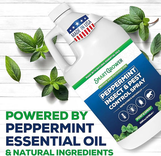 All Natural Peppermint Oil Insect & Pest Control Spray Repels Mice, Spiders, Ants, for Home, Indoor, Outdoor, Garden Maximum Strength Smart Grower Ready to Use 128 FL OZ