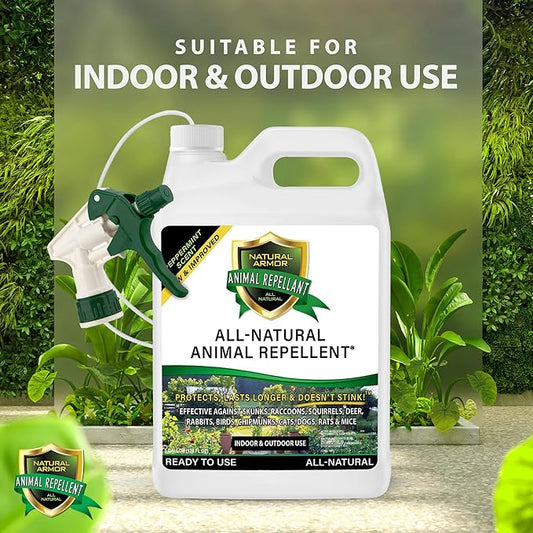 Natural Armor Animal & Rodent Repellent Spray. Repels Skunks, Raccoons, Rats, Mice, Deer Rodents & Critters. Repeller & Deterrent in Powerful Peppermint Formula – 128 Fl Oz Gallon Ready to Use