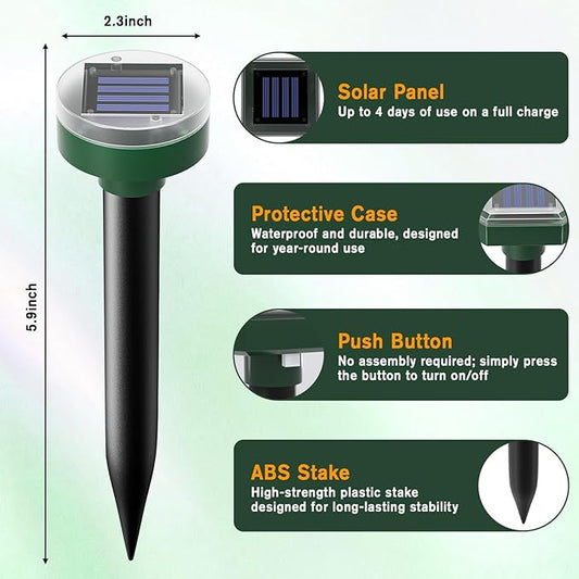 Mole Repellent 10 Pieces,Solar Powered Mouse Repellent Waterproof Rodent Gopher Repellent,360° Mouse Control Outdoor Mole Repeller for Garden Yard & Patio,Green