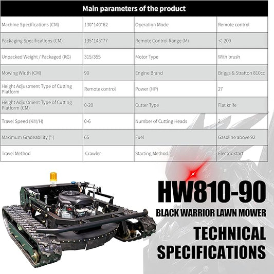 Robotic Remote Control Lawn Mower 90° Climbing Adjustable Mowing Height Track Drive All Terrain Grass Cutter Yard Mower(HW-810-90B)