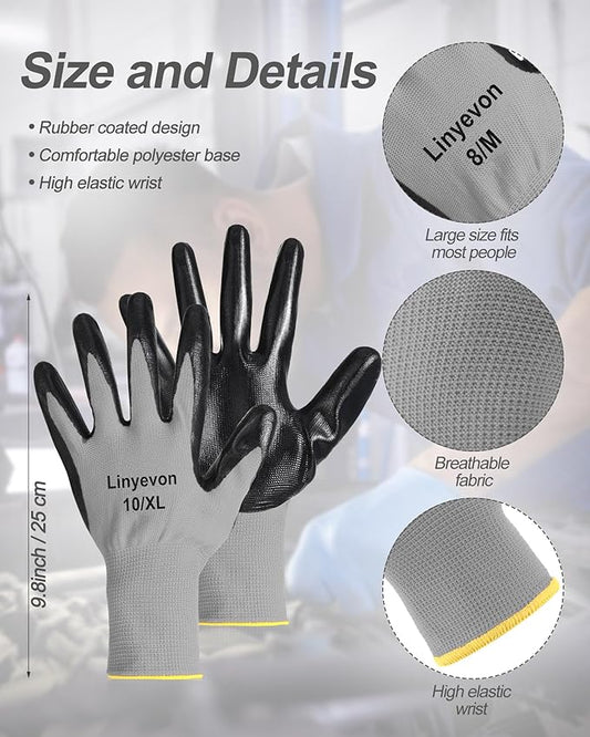 Maxcheck 54 Pairs PU Coated Gloves Bulk, Reusable Rubber Safety Gloves for Men Women Work Warehouse, Mechanic, Woodworking