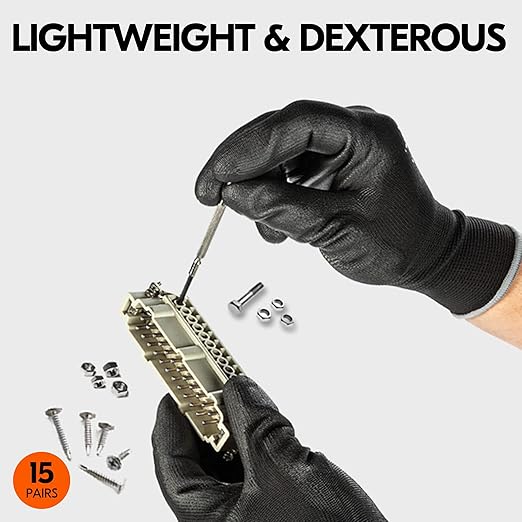 Vgo... 15-Pairs Safety Work Gloves, Gardening Gloves, Polyurethane Coated, Dipping Gloves, Latex Free (Size L, Black, PU2103)