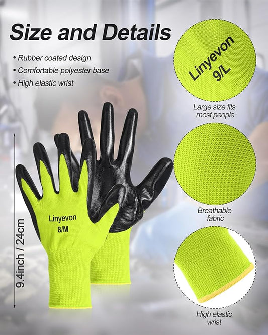 72 Pairs Gardening Work Gloves Bulk for Men Women, Rubber Coated Garden Multipack Safety Construction Glove