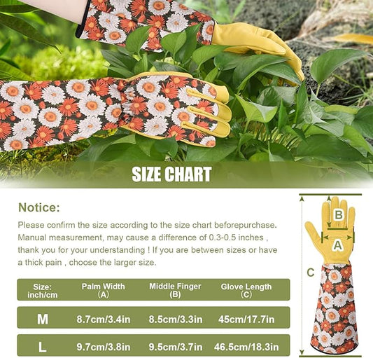 Gardening Gloves Thorn Proof for Rose Pruning & Cactus Trimming, Long Leather Garden Gloves for Women & Men (Medium)