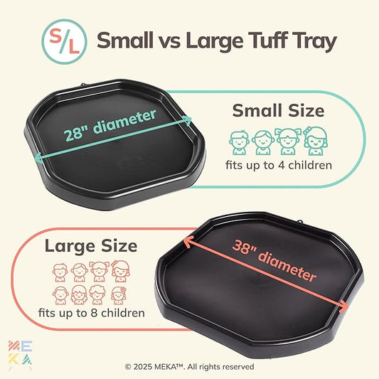 MEKA Tuff Tray with Solar Fountain, Sensory Water Play Tray for Kids, Outdoor Indoor Messy Play, STEM Activities, Classroom or Home Use ((Black, Small 28" x 28"))