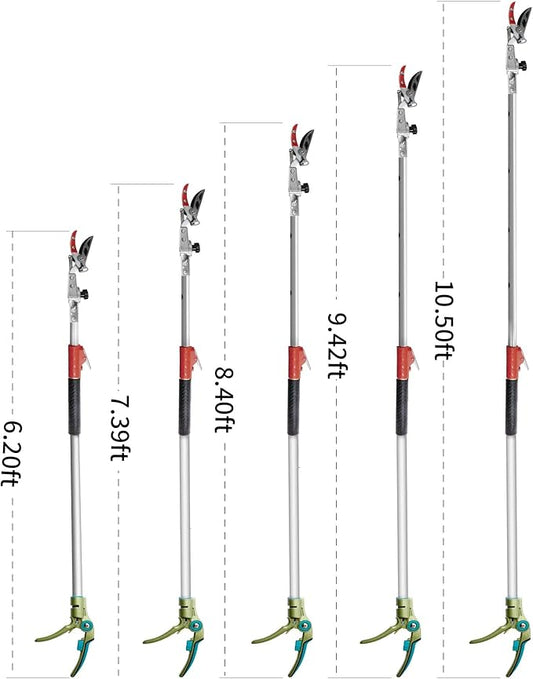 GARTOL Pruner for Garden, Cut Upto 1 Inch & Hold Telescopic Pole Pruner, Fruit Picker with Rotating Blade Head, Lightweight Aluminum Extendable Handle for Tree Branch Cutter, 6.23-10.5 FT, Silver