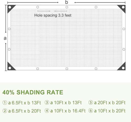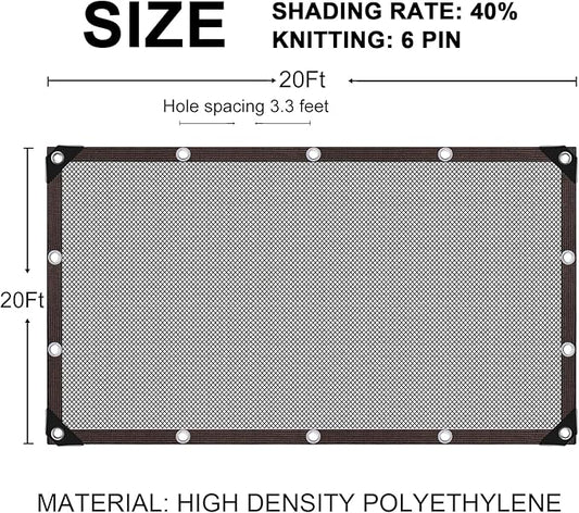Storystore 40% Shade Cloth with Grommets, 20Ft x 20Ft Garden Mesh Shade Tarp Sun Shade Net for Greenhouse, Cover, Patio, Plant, Flower, Chicken, Coop