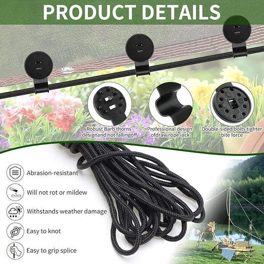 50PCS Shade Cloth Plastic Clips Heavy Duty Lock Grips with Rope, Round Plastic Black Clips Sunshade Net Fixing Clip, Shade Fabric Clips for Bird Netting, Garden Netting (50PCS+Nylon Rope)