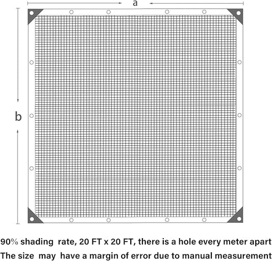 winemana 90% Shade Cloth, Dog Kennel Shade Cover, 20 x 20 FT Sturdy Durable Sunblock Shade Mesh Tarp with Grommets for Patio Plants Greenhouse Chicken Coop Porch