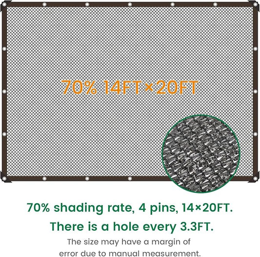 70% 14 X 20 FT Black Shade Cloth, Outdoor Sunblock Shade Cloth with Grommets, Durable Sun Shade Netting Shading Antifreezing for Patio, Garden, Plants Cover, Greenhouse, Barns, Dog Kennel