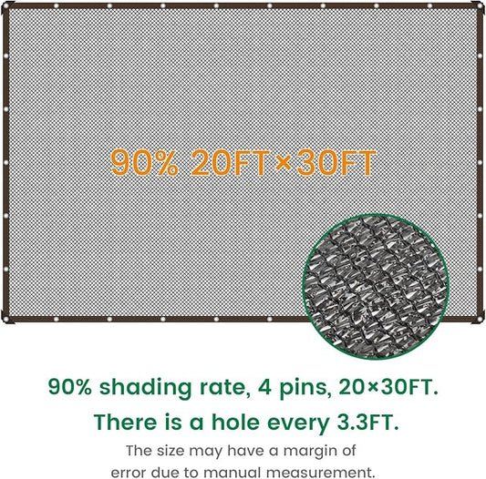 90% 20 X 30 FT Black Shade Cloth, Outdoor Woven Sun Shade with Grommets, Durable Breathable Netting Shading Antifreezing for Patio, Garden, DIY Home, Plants Cover, Greenhouse, Dog Kennel