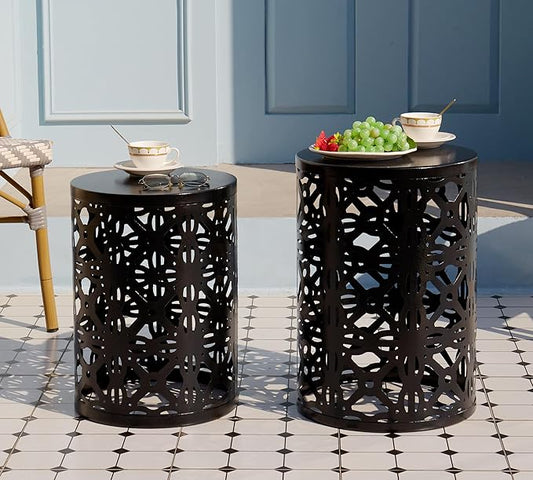 Round Side Table, 1 Pack 14 Inch Bedside Table for Living Room, Bedroom, Weather Resistant Black Metal Outdoor Side Table for Patio Balcony Yard Porch Garden, Plant Stand for Indoor Outdoor Use