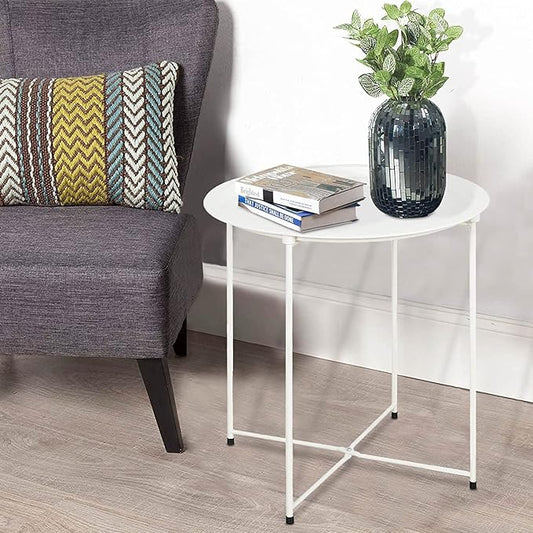 Garden 4 you End Table Metal Side Table Round Folding Tray Cyan Sofa Small Accent Fold-able Table, Round End Table Tray, Next to Sofa Table, Snack Table for Living Room and Bed Room,White